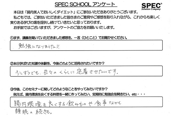 セミナー「腸内美人でおいしくダイエット」へのご感想